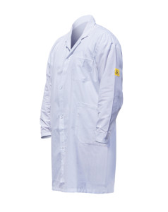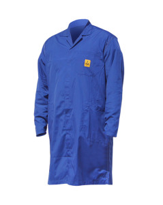 Fartuchy ESD dostępne w kolorach białym, jasno- i ciemnoniebieskim.