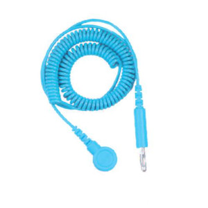Spiralny przewód uziemiający o długości 1,8m, z rezystorem 1MΩ, niebieski. Zatrzask 10mm/wtyk bananowy
