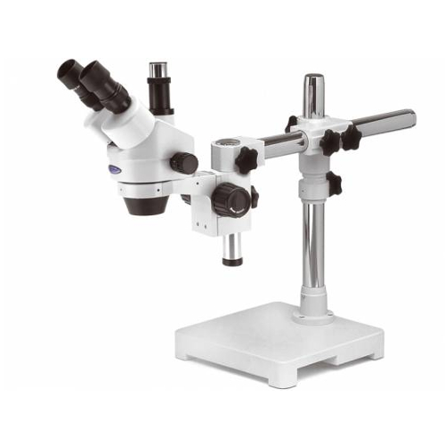 Mikroskop stereoskopowy wyposażony w standardową głowicę trinokularową.