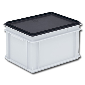 Wykonane z przewodzącego polipropylenu. Specjalny kształt umożliwia ustawianie zamkniętych kontenerów w stosach.